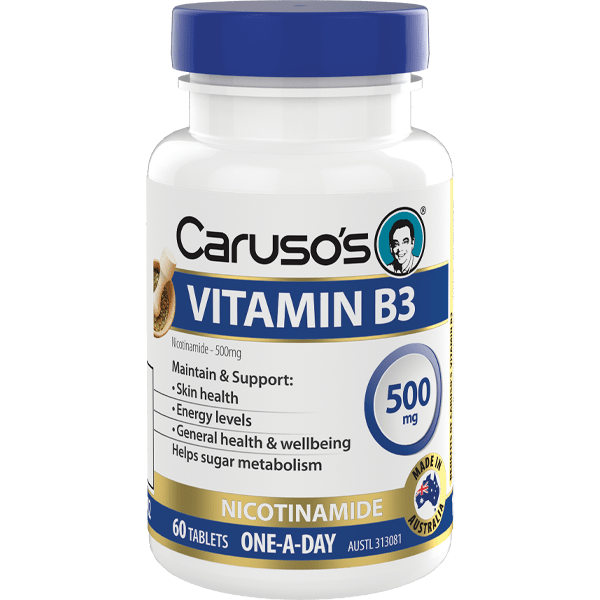 Caruso’s – Vitamin B3 60 Tablets – Nicotinamide 500mg Skin & Energy Health