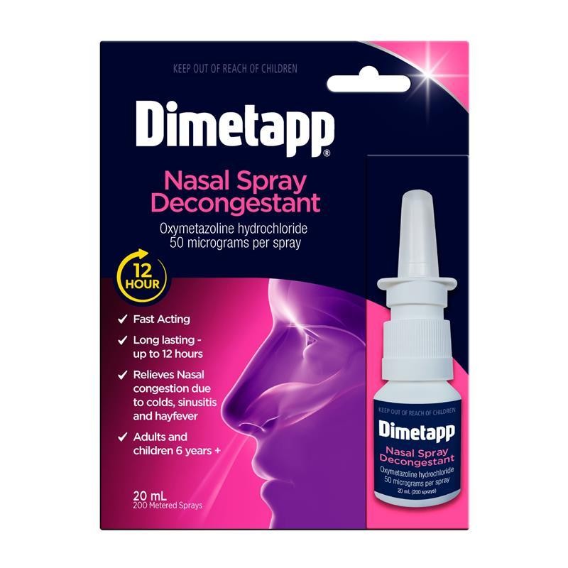 Dimetapp 12 Hour Nasal Spray is fast acting and long lasting, providing relief from congestion due to colds, sinusitis, hay fever and other respiratory allergies.