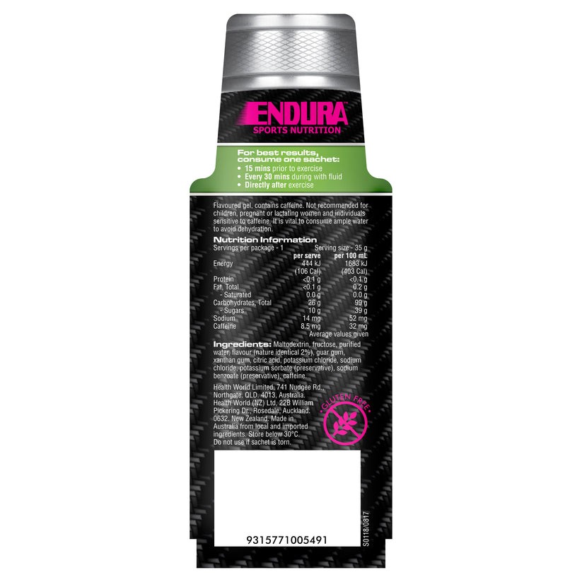 Do not use if sachet is torn. Flavoured gel contains caffeine. Not recommended for children, pregnant or lactating women and individuals sensitive to caffeine. It is vital to consume ample water to avoid dehydration.