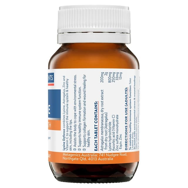 Ethical Nutrients Lysine Defence combines Lysine, Astragalus, Zinc and Vitamin C to support the immune system, healthy skin, including the lips and assist the body to cope with environmental stress.