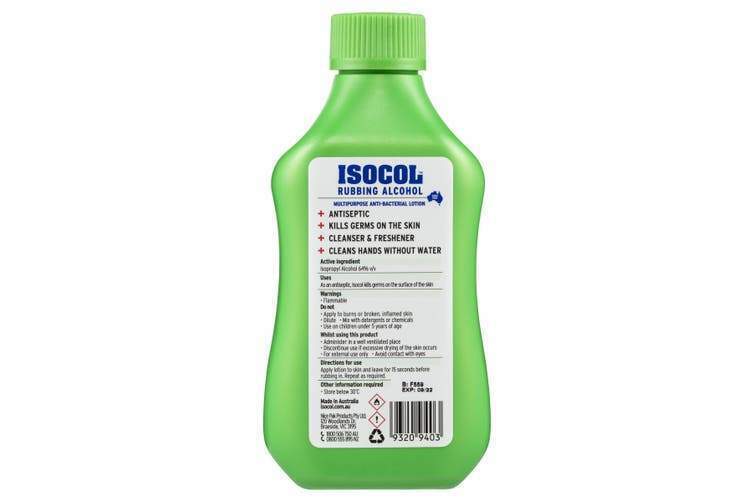 Isocol Rubbing Alcohol is an effective antiseptic, cleanser and freshener all in one bottle. With so many uses for your everyday life, it’s a useful product for Australian households. The active ingredient Isopropyl Alcohol is an antiseptic that evaporates quickly and leaves a fresh subtle fragrance and a tingling fresh feeling on the skin. Helps prevent pimples and acne, dries oily skin when used twice daily. Can be used as an aftershave, body rub and cleanser. Isocol replaces the need for various different cleaning products.
