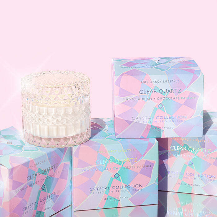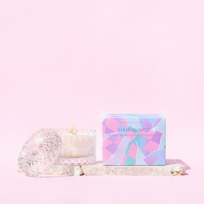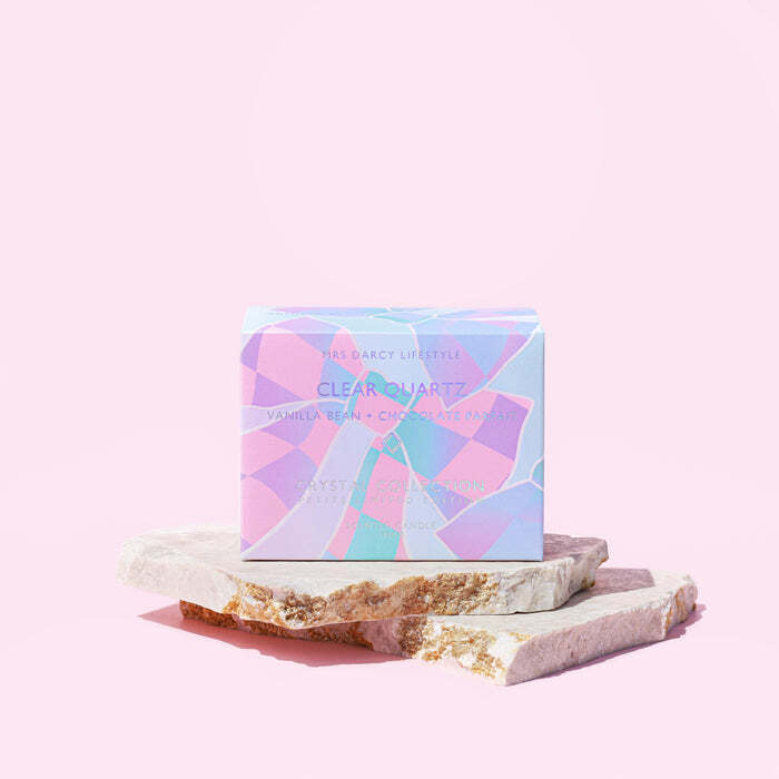 Mrs Darcy Lifestyle – Clear Quartz Candle 190g Vanilla Bean + Chocolate Parfait