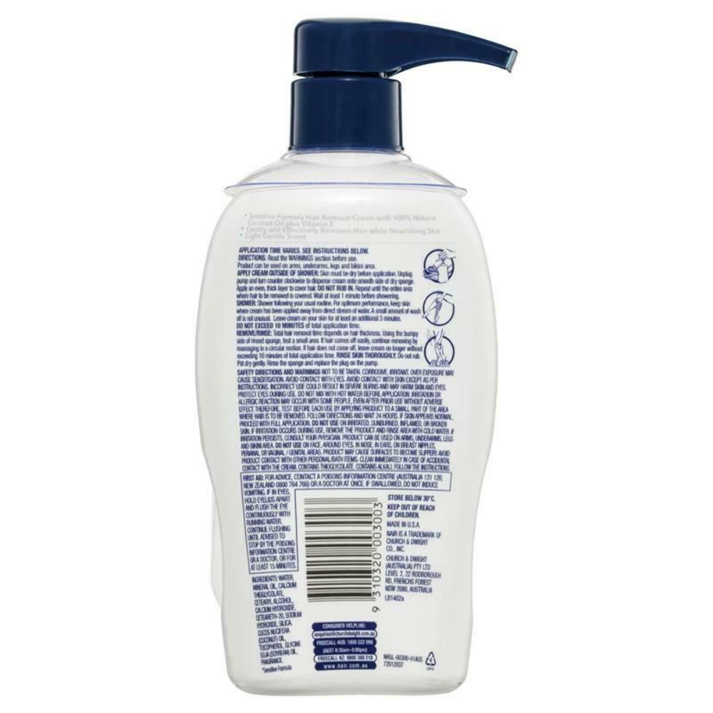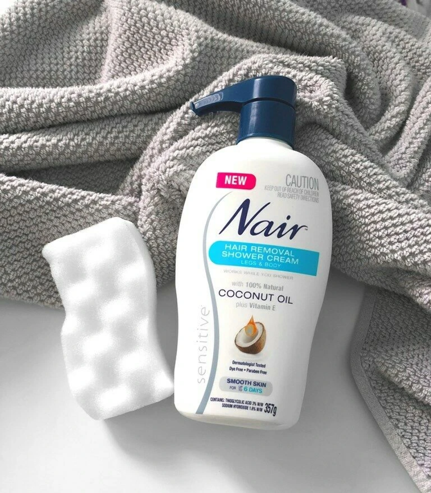 Nair Sensitive formula Hair Removal Shower Cream works while you shower for fast and effective hair removal. Designed with sensitive skin in mind, this new shower cream is enriched with 100% natural